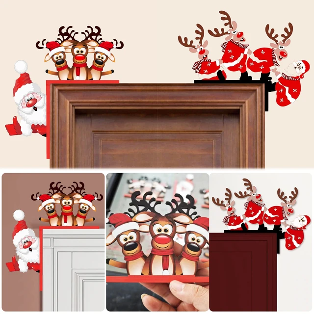 Ornement de cadre d’angle de porte de Noël, père Noël en bois