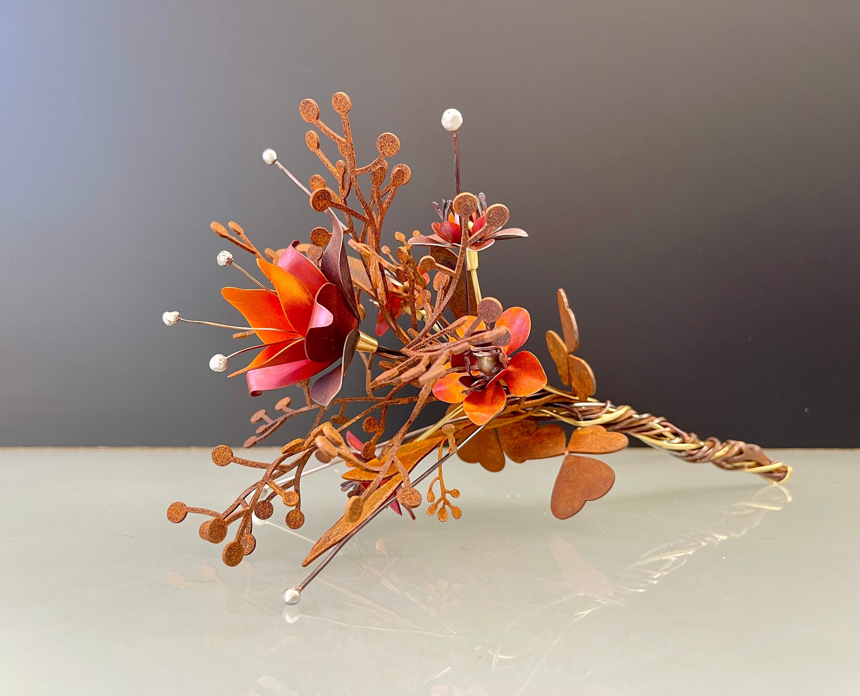 Mini Bouquet Sculpture Rusted Metal Flower and Plant Design Etsy