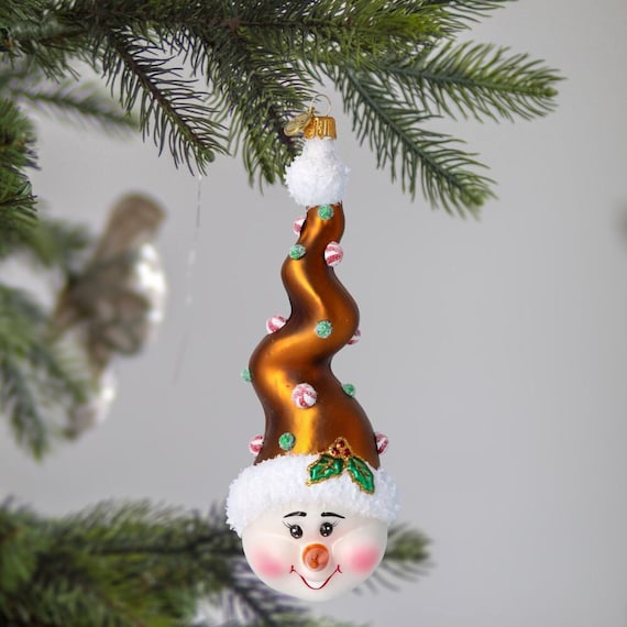 Glazen Peperkoeksneeuwman met pepermuntjes gedraaide hoed Etsy