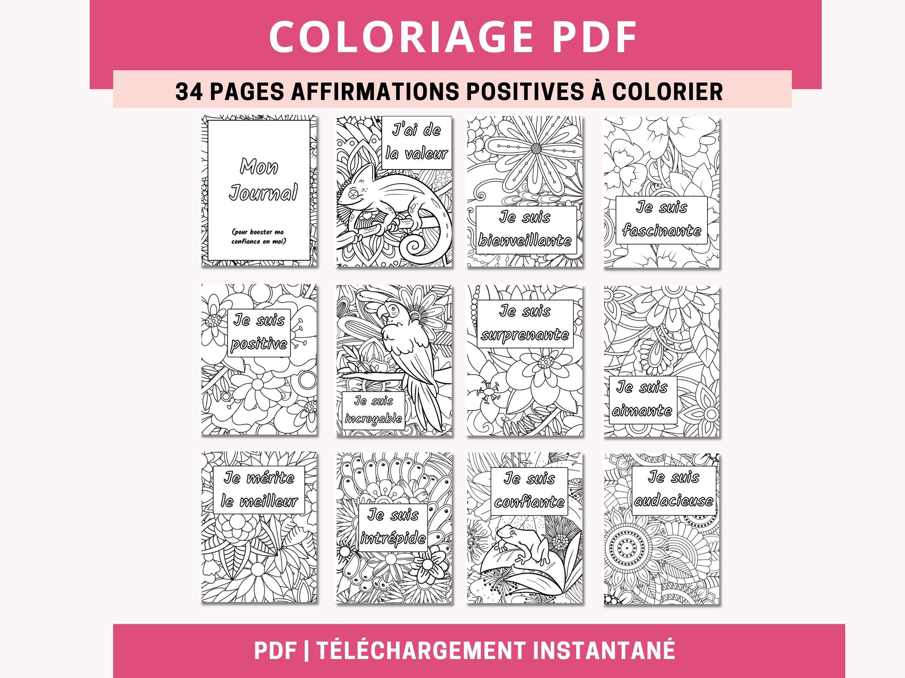 Adult Coloring Positive Affirmation in French PDF to Print 34 Etsy