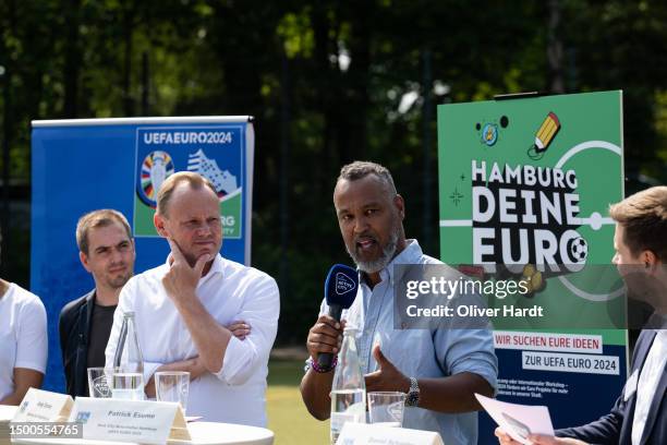 Host City ambassador Hamburg, Patrick Esume speaks to the media