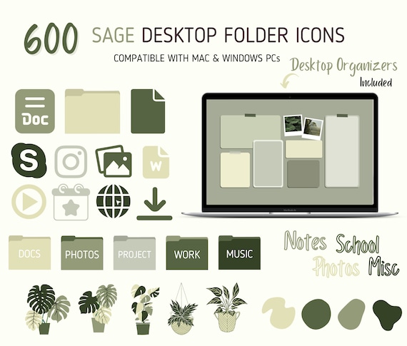 600 Sage Desktop Icons Desktop Organizer Bundle Botanical Etsy